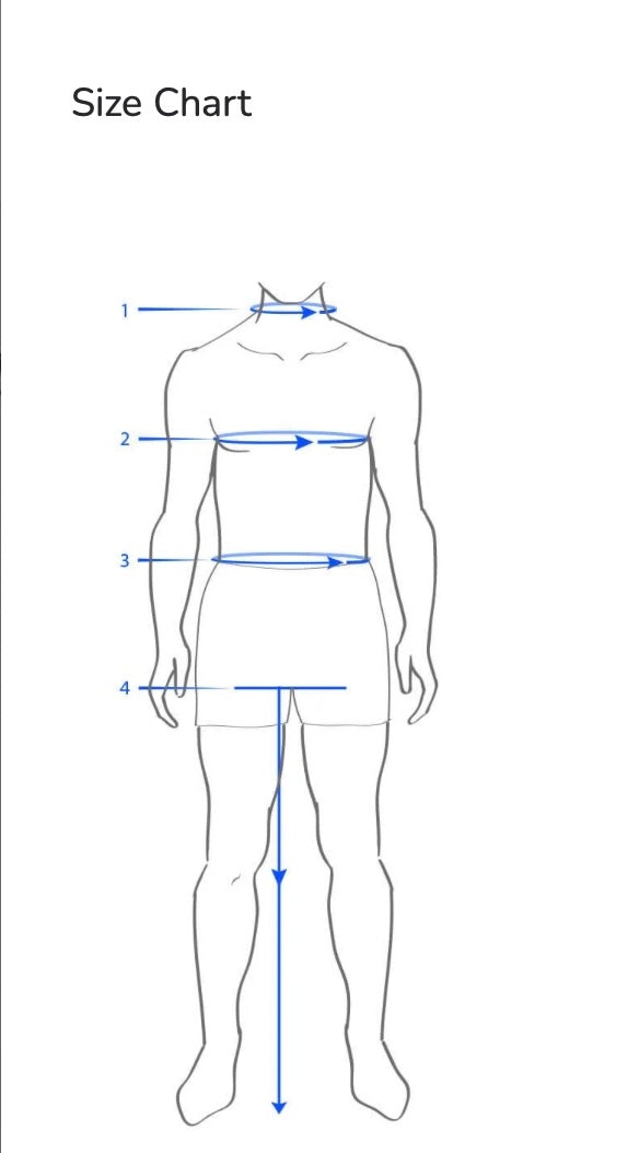 Example: If your chest is 36 inches, choose the size that fits 36 inches in the chart.