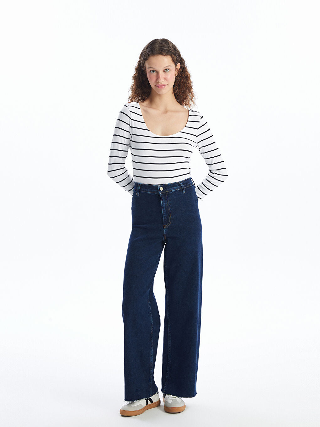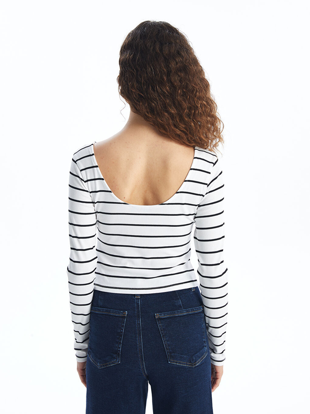 Crew Neck Striped Women's Tops | White and Navy Blue